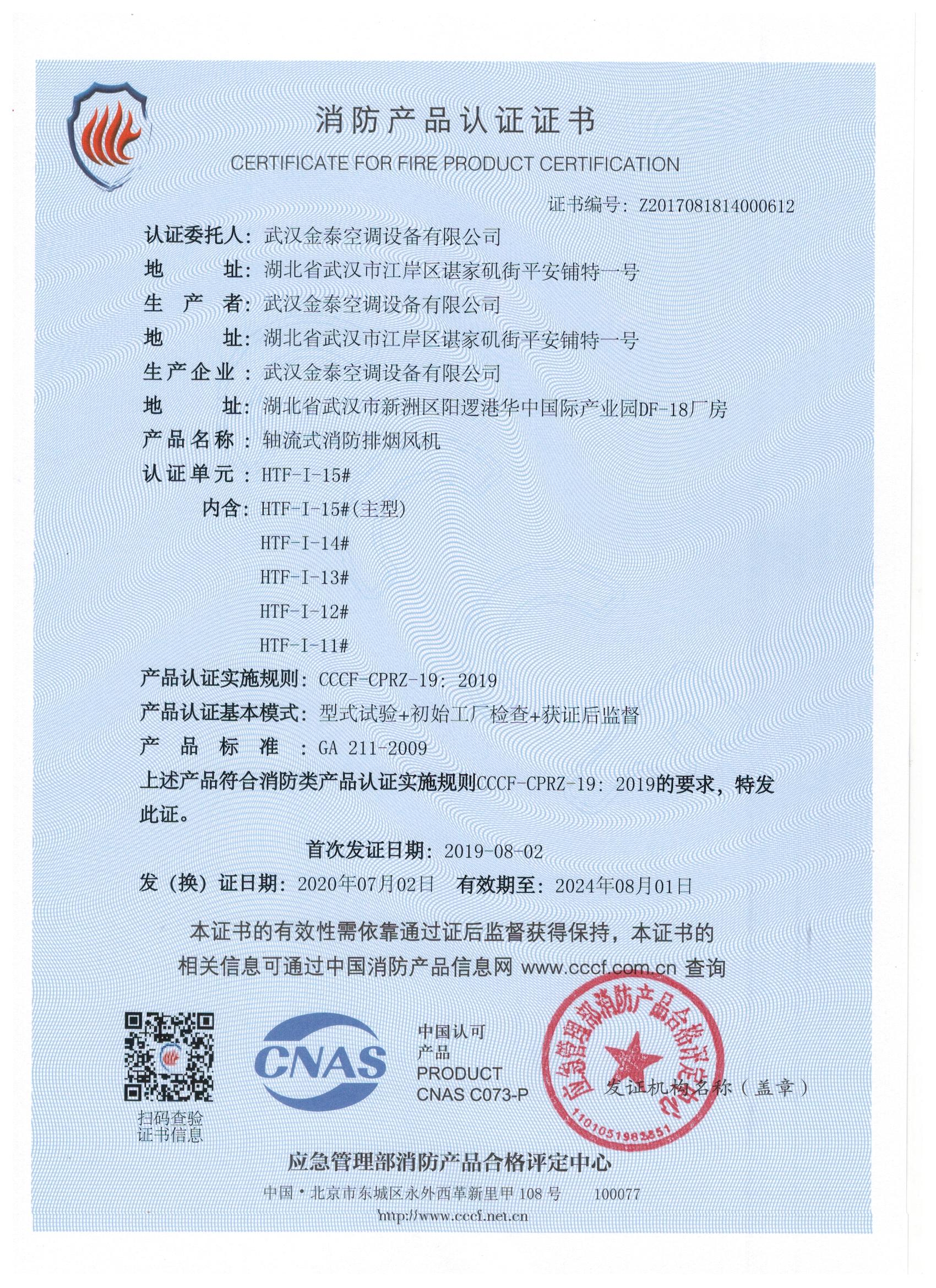 武漢金泰空調(diào)設(shè)備有限公司 是國內(nèi)長期專注于民用風(fēng)機(jī)、工業(yè)風(fēng)機(jī)領(lǐng)域的標(biāo)桿企業(yè):專業(yè)生產(chǎn)消防排煙風(fēng)機(jī)系列、排煙防火閥系列、一般通風(fēng)機(jī)系列(軸流式、離心式、屋頂式、壁式、隧道式、射流式)、風(fēng)口、風(fēng)管等消防及通風(fēng)設(shè)備。產(chǎn)品經(jīng)公安部消防產(chǎn)品合格評(píng)定中心評(píng)定符合消防產(chǎn)品CCC標(biāo)準(zhǔn);經(jīng)中國合格評(píng)定國家認(rèn)可委員會(huì)認(rèn)證的檢驗(yàn)所檢驗(yàn)合格;經(jīng)國家防火建材質(zhì)量監(jiān)督檢驗(yàn)中心(四川中心)火燒實(shí)驗(yàn),耐火性能達(dá)標(biāo)。